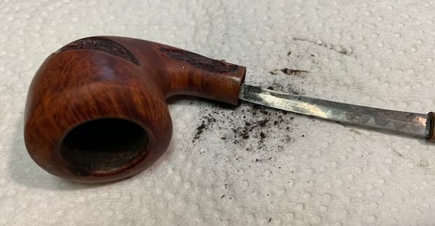 I cleaned up the reaming of the bowl with a Savinelli Fitsall Pipe Knife. I took out the remnant of cake that had been left so I could examine the walls. I was glad to see there were no fissures in the briar walls.