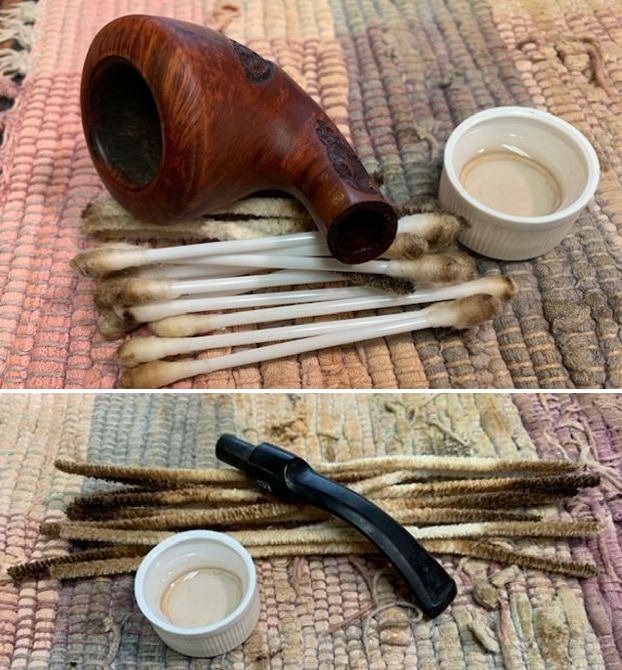I scraped out the shank with a pen knife to remove the tar build up that was on the walls. I followed that up by cleaning the mortise and the airway in both the shank and the stem with 99% isopropyl alcohol, pipe cleaners and cotton swabs until the interior of the pipe was very clean.