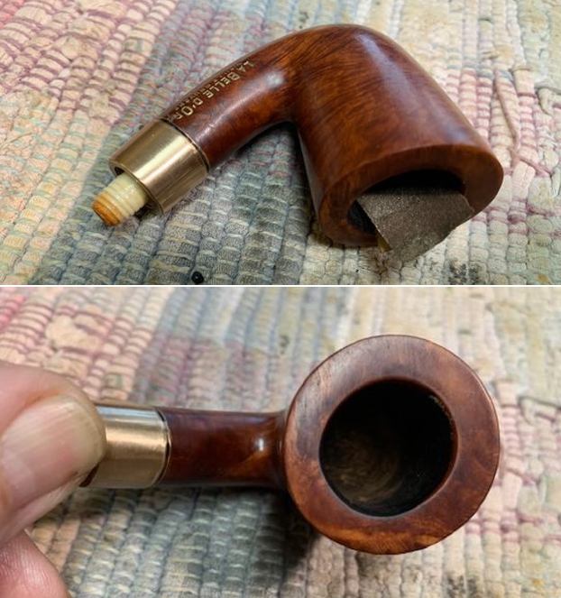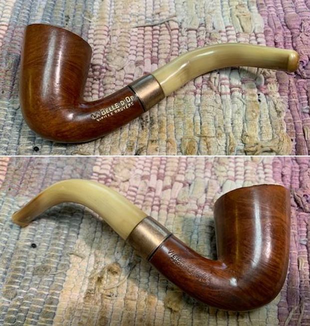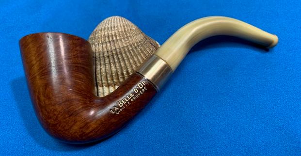 This another interesting pipe – a beautiful La Belle D’ Or Vielle Bruyere “Double Or” Horn Stem Bent Dublin It turned out really well and it is a great looking pipe with a great shape to it. The grain on the briar, the polished brass band and the sheen on the horn stem really popped when the pipe was buffed with blue diamond on the buffing wheel. I gave the bowl and stem multiple coats of carnauba wax and buffed it with a clean buffing pad. I hand buffed the pipe with a microfiber cloth to deepen the shine. The La Belle D’ Or Vielle Bruyere “Double Or” Bent Dublin is comfortable to hold and is quite distinguished looking. Give the finished pipe a look in the photos below. The dimensions of the pipe are Length: 5 ¼ inches, Height: 2 inches, Outside diameter of the bowl: 1 ¼ inch, Chamber diameter: ¾ of an inch. The weight of the pipe is 32 grams/1.13 ounces. This is a beautiful pipe and I am still thinking through what I am going to do with it. Should I sell it or add it to the collection? Not sure yet. Thanks for reading this blog and my reflections on the pipe while I worked on it. Keep an eye out on the blog as I have several other older horn stemmed pipes that will be coming up soon.