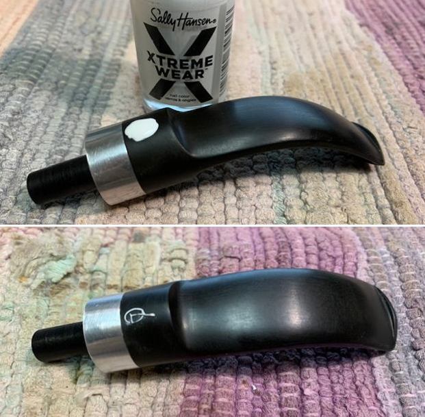 I set the bowl aside and turned my attention to the stem. I touched up the BC stamp on the left side of the stem with white acrylic nail polish. I worked it into the stamp with a tooth pick and then sanded off the excess once it had dried with a 1500 micromesh sanding pad.