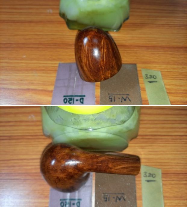 To put the finishing touches, I mounted a cotton cloth buffing wheel on to my hand held rotary tool and polished the stummel and stem with Blue Diamond compound. This compound helps to remove the minor scratch marks that remain from the sanding.