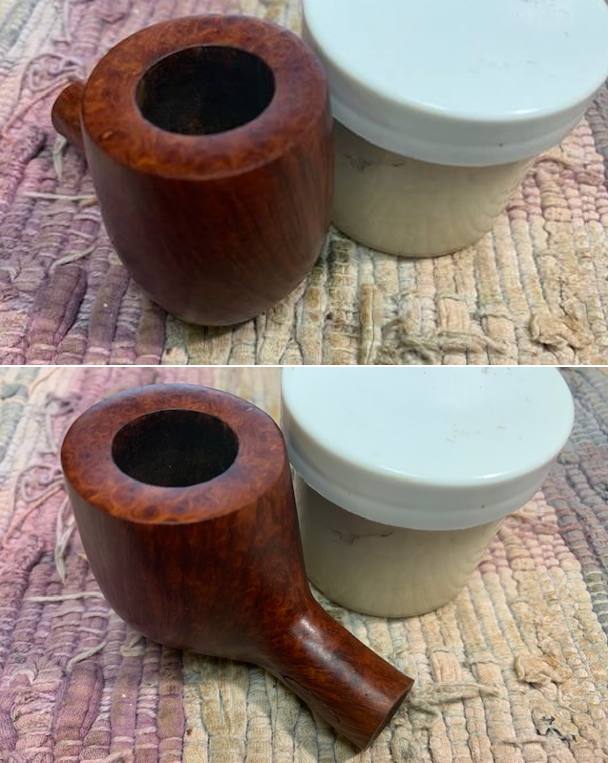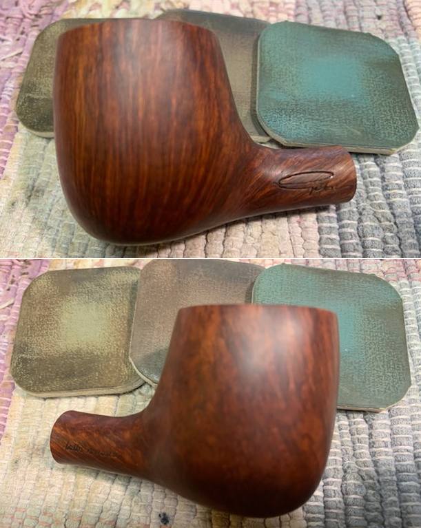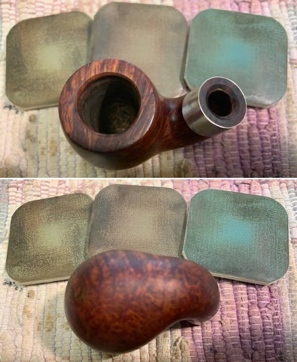 The stems were first on my list. Fortunately, Steve had a couple of new Missouri Meerschaum stems for me to use on the cherrywood pipes. That was the easiest part of this whole restoration! I also had to sculpt a new stem for the Savoy. Stupidly, I forgot to take photos of this procedure, but, suffice it to say, it was tricky getting the tenon to fit correctly and getting the edges of the new stem to match with the existing stummel.
