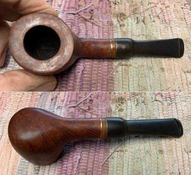 Next on the chopping block is a quintet of pipes. Word has been getting around! My barber’s boss approached me recently about restoring his late grandfather’s pipes. Of course, I was only too happy to oblige. The fellow told me that his grandfather did not have fancy pipes, but he just wanted them to look good. Interestingly, he also asked that I not clean the pipes too much – he wanted some of the olfactory memories to remain. When I got my hands on the pipes, I realized what I was up against. These five pipes were really a mess. Quite frankly, if I had these pipes for myself, I would have tossed some on the firewood pile. But my customer wanted these pipes restored as a nice remembrance of his grandfather – and I completely understand and respect that. Since I restored these pipes all together, I thought I would write up their story altogether too – with a tip of my hat to my customer’s late grandfather.