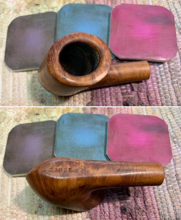 Missouri Meerschaum is, of course, most famous for being the largest corncob manufacturer in the world – although they do make hardwood pipes too. Herb Wilczak and Tom Colwell’s book, Who Made That Pipe? states that Château Bruyère (as its name suggests) is made in France by an unknown manufacturer. Pipedia tells us that Savoy is a brand of Oppenheimer Pipe/Comoy’s, which was also sold by M. Linkman & Co. Finally, Brigham is the famous Canadian pipe manufacturer. The markings suggest that this Brigham was made after the move of production to Italy.