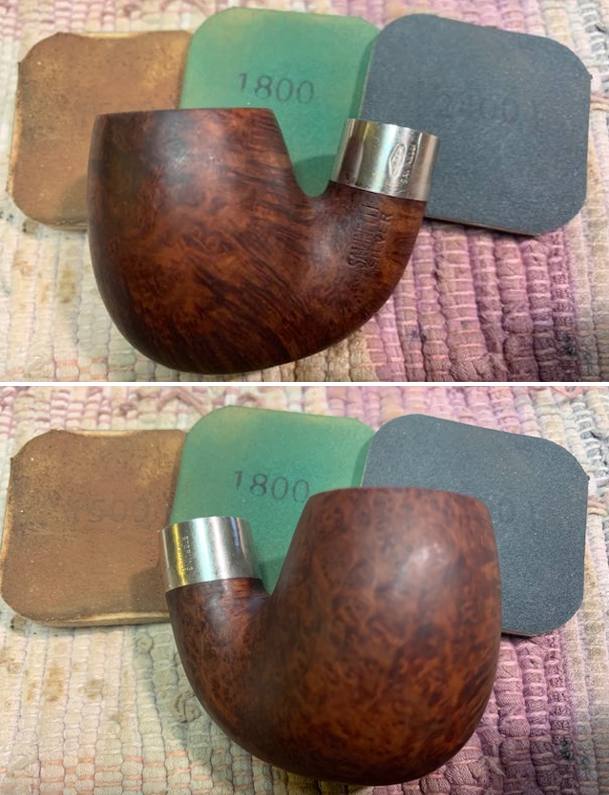 Then it was off for a trip to the buffer. A dose of White Diamond and a few coats of carnauba wax were just what these pipes needed to shine (literally and figuratively). The polishing was the cherry on top of a long road of recovery for these five pipes. The pipes began in the hands of a man who clearly loved smoking them. His grandson, honouring his grandfather’s memory, wanted them to look good again – but not so new that the essence of his grandfather was lost. It was my job to make sure that his grandfather was still in those pipes. I know that my customer will enjoy looking at those pipes (and remembering) for many years to come. I hope you enjoyed reading the story of these pipes as much I as I did restoring them. If you are interested in more of my work, please follow me here on Steve’s website or email me directly at kenneth@knightsofthepipe.com. Thank you very much for reading and, as always, I welcome and encourage your comments.
