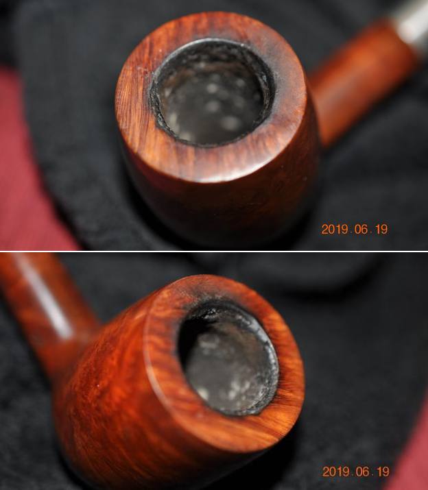 He took close up photos of the rim top to show the cake and the lava on the rim top. You can also see the damage to the inner edge of the rim. He also took photos of the stem to show the condition of tooth marks and chatter.