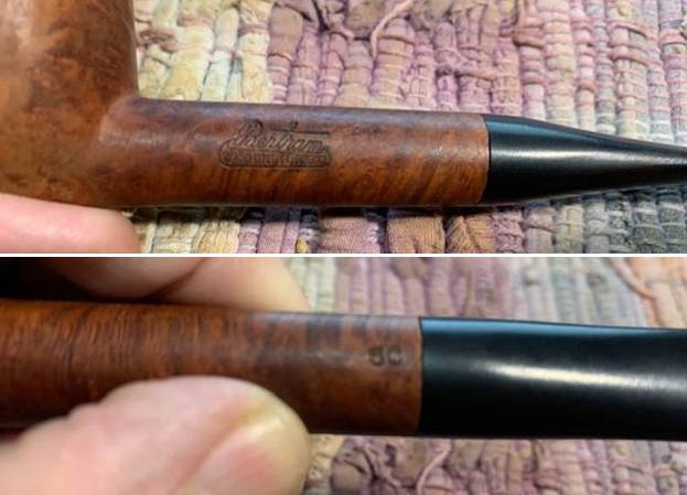 He took photos of the stamping on the left and underside of the shank. It reads as noted above and is clear and readable. The was a bit of double stamping on the Bertram stamp and on the 50 stamp that is very visible in the photos below but less so in the restored pipe. The grade number on the underside of the shank is 50.