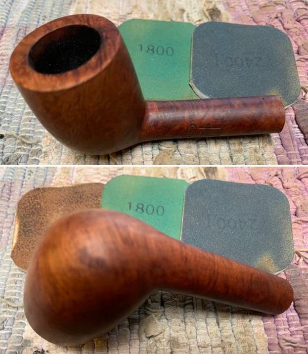 Now it was time to do my work on the pipe. I polished the bowl and the rim top, sides and shank with micromesh sanding pads – wet sanding with 1500-12000 grit pads and wiping it down after each pad with a damp cloth.