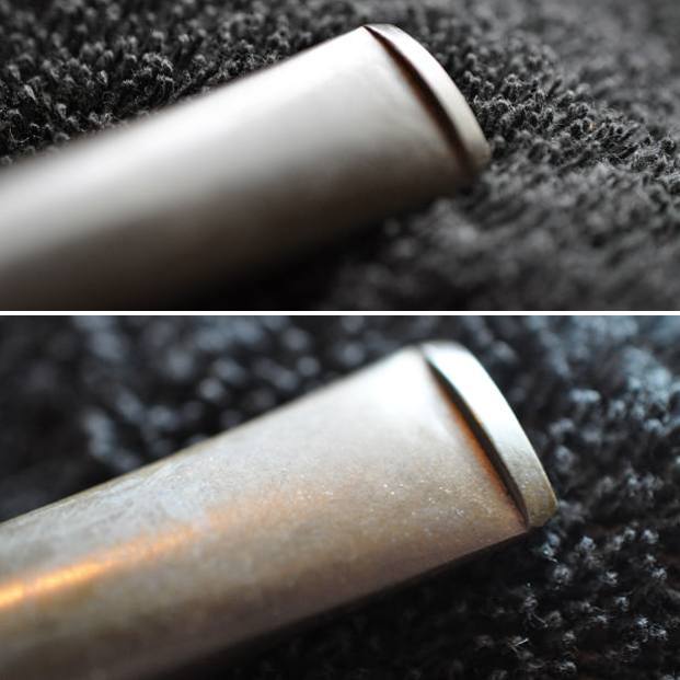 The rim top looked very good. The inner edge of the rim also looked surprisingly good. There was no damage to the edges. The stem surface looked very good with a few small tooth marks and chatter on both sides near the button.
