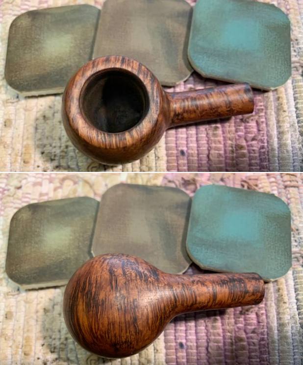 I lightly flattened the face of the shank with 220 grit sandpaper on a topping board. I did not remove much briar just a little bit to flatten it out.