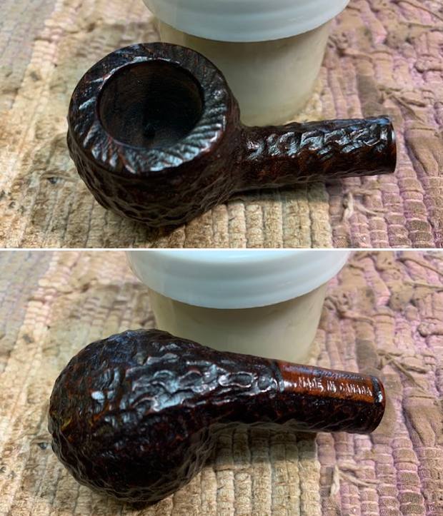 Around the late 1960s or early 1970s, at the beginning of what I’ve called the Canadian Era (roughly 1970 – 1980), the stampings changed again as Brigham moved to modernize its logo. Pipes are stamped with the 3-digit shape number and “Brigham” over “Made in Canada”.
