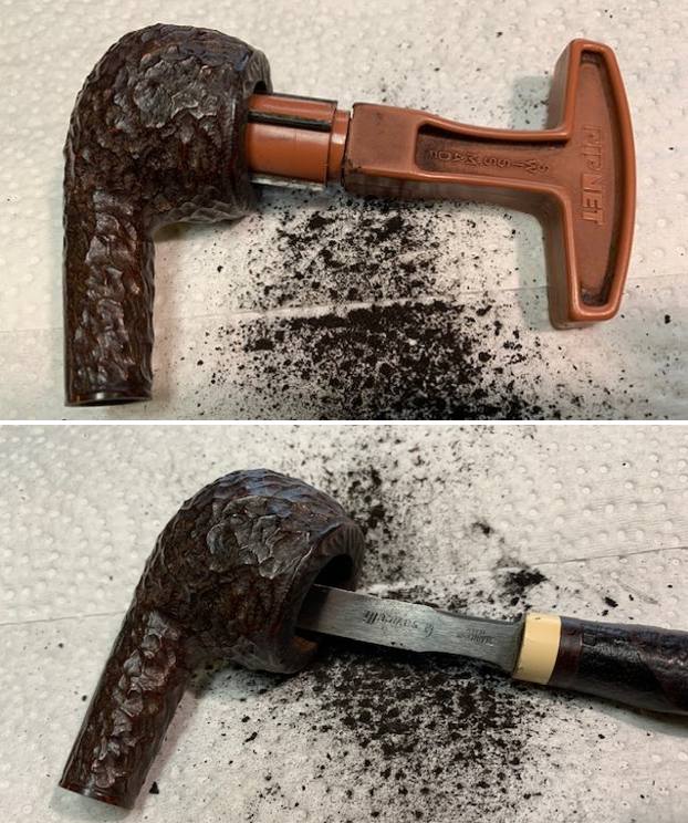 I set the stem aside and turned my attention to the bowl. I reamed it with a PipNet pipe reamer using the third cutting head to take the cake back to bare briar. I cleaned up the reaming with a Savinelli Fitsall Pipe Knife.