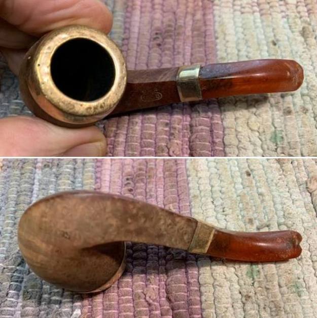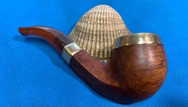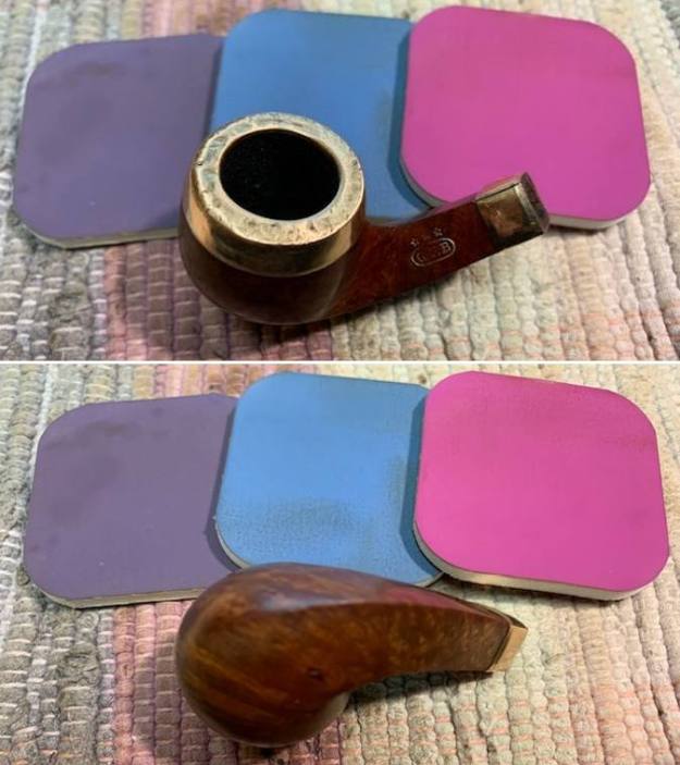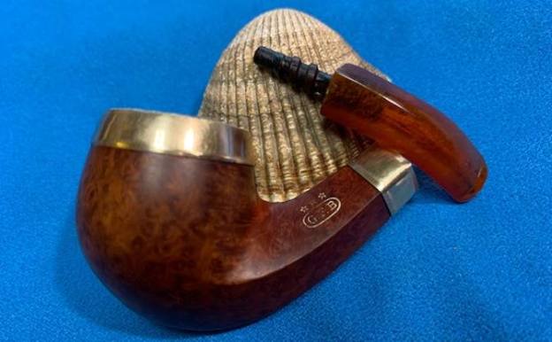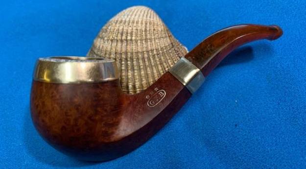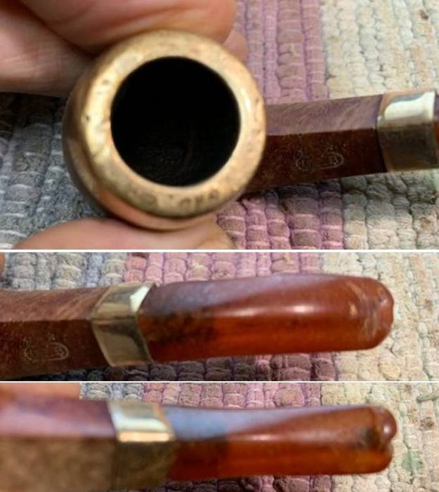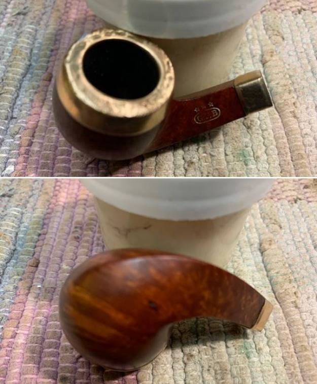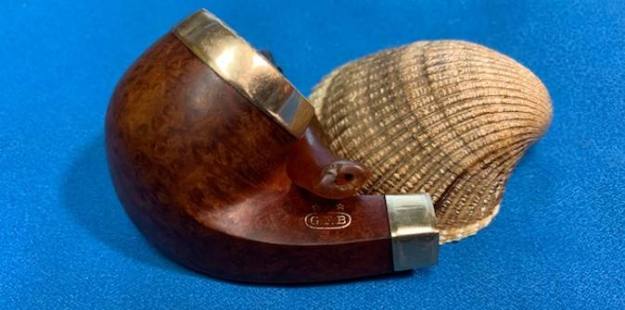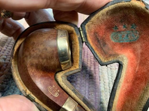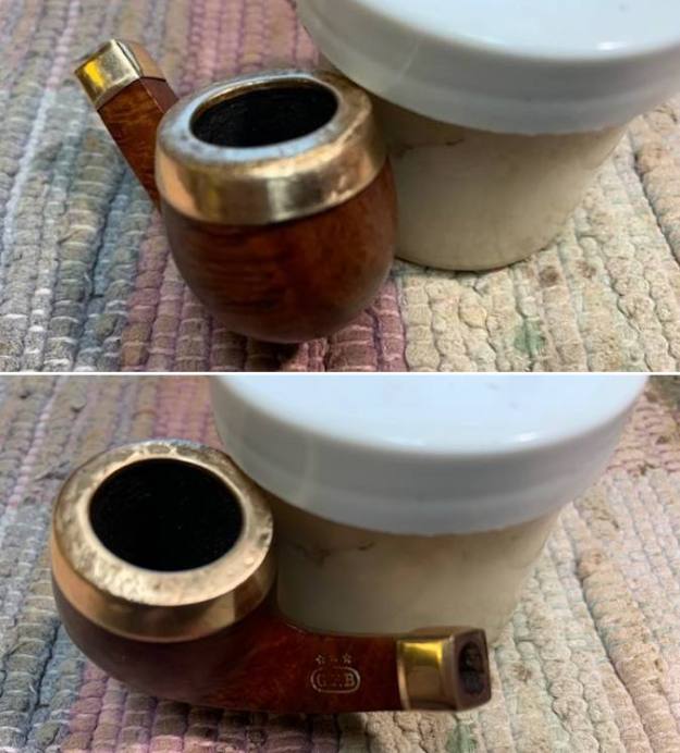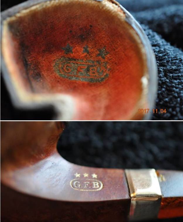 I took a photo of the Three Stars stamped over the G.F.B. oval logo on the left side of the shank. You can also see the rolled Gold Plated Ferrule on the shank end in the photo. Even in its worn condition it still is a beautiful looking piece of pipe history.