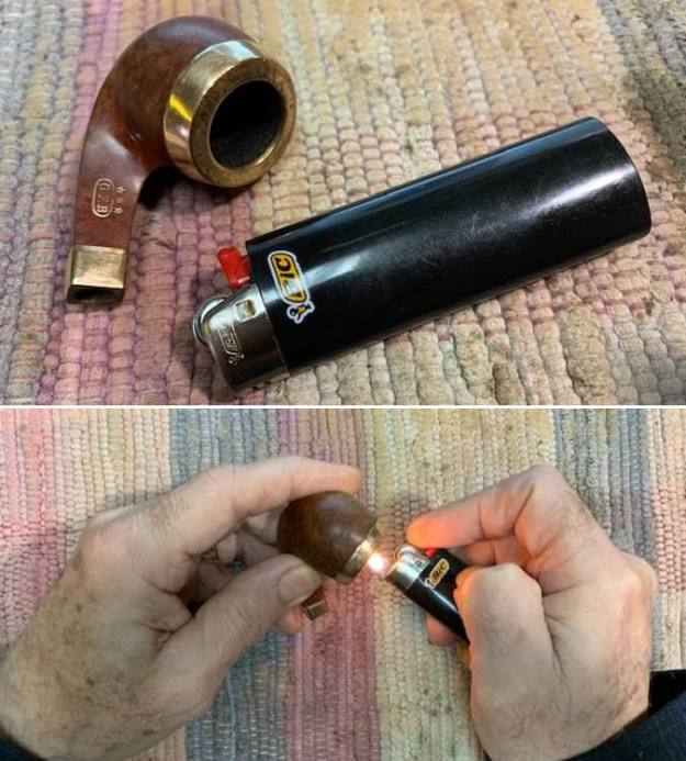 Jeff took the pipe out of the case and took photos of the pipe to show the look and the condition it was in when we received it. It was nowhere near the pristine beauty of its “Big Brother”. It was well used and tired looking.