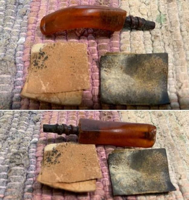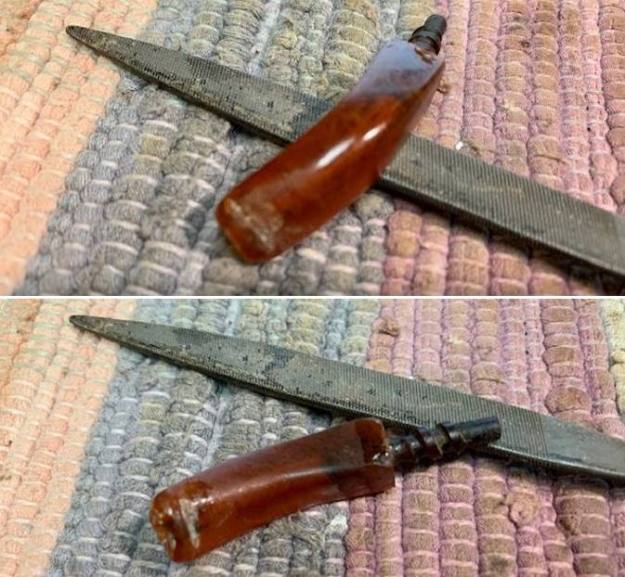 He took photos of the bone tenon to show the tars and debris that had collected on the screws of the tenon. It was well used and filthy.