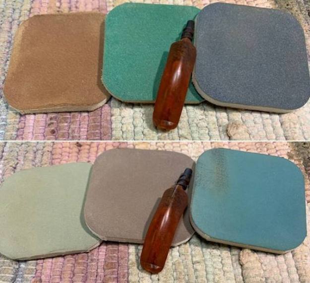 I put the bowl in the case for awhile and turned my attention to the stem. I started the process by filling in the chipped areas and tooth marks on the stem surface with clear CA glue. Once the repairs cured I smoothed them out with a small file. I sanded the surface with 220 grit sandpaper to blend it in. I started the polishing with 400 grit wet dry sandpaper.