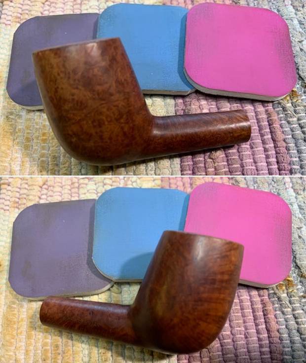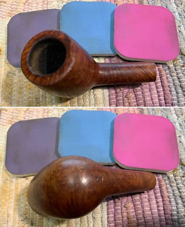 I decided to enjoy a bowl of Friedman & Pease Fool’s Cap in a Nachwalter I cleaned and restored a while ago. I find that slowly puffing a bowl relieves some of the tedium of shaping and sanding a newly fit stem to get all the angles just right.