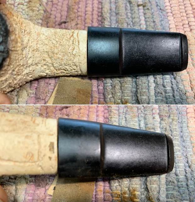 I took photos of the pipe after I had fit the stem to the shank. The look and fit of the stem looked like it was original. I was pleased with the look and read to move on to polishing it.
