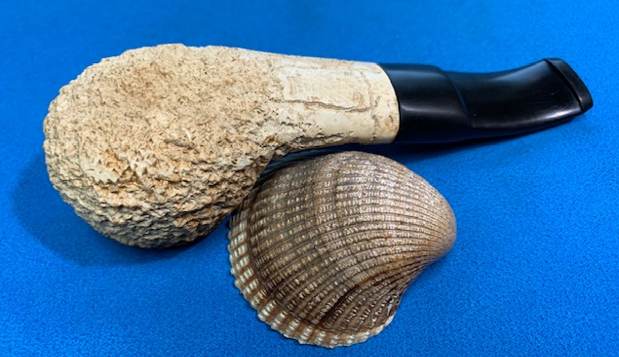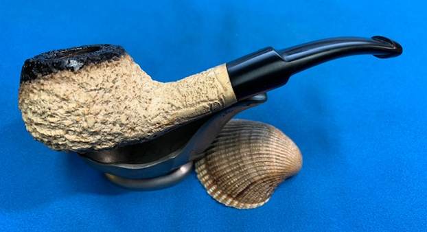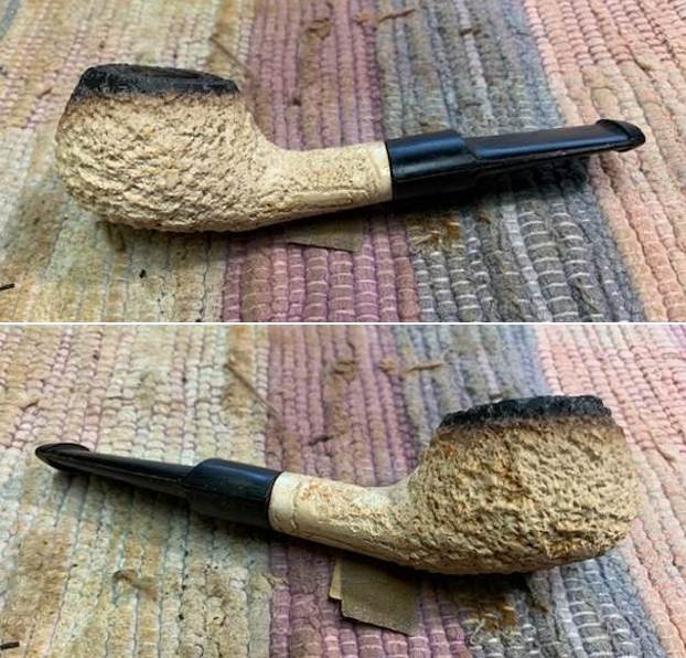 I am excited to be on the homestretch with interesting British Made Flumed Rusticated Meerschaum Author. This is the part I look forward to when it all comes back together, polished and waxed. I put the bowl and the new stem together and polished the stem and bowl with Blue Diamond to polish out the scratches in the vulcanite and give a light shine to the bowl. I gave the stem multiple coats of carnauba wax. I buffed the pipe with a clean buffing pad to raise the shine. I hand buffed it with a microfiber cloth to deepen the shine. The pipe polished up pretty nicely. The rugged rusticated finish looks really good with the deep nooks and crannied of the rustication and the porous spots showing the “grain” in the meerschaum. The restored bowl goes really well with the new polished black saddle vulcanite stem. This Rusticated Flumed Author was another fun pipe to work on and came out looking great. It is a comfortable sized pipe to hold in the hand. The finished pipe is shown in the photos below. The dimensions of the pipe are Length: 5 inches, Height: 1 ¼ inches, Outside diameter of the bowl: 1 ¼ inches, Chamber diameter: ¾ of an inch. The weight of the pipe is 51 grams/1.80 ounces. If you are interested in adding this pipe to your rack it will be on the rebornpipes store in the Ceramic and Meerschaum Pipe Section soon. Thanks for reading this blog and my reflections on the pipe while I worked on it.