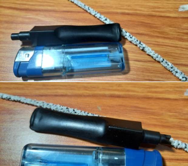 I heated the bite zone of the stem with the flame of a lighter to raise the tooth indentations to the surface by causing the vulcanite to expand. This did raise the bite marks to an extent; however, I would still need to rebuild the buttons and fill the bite marks in the bite zone.