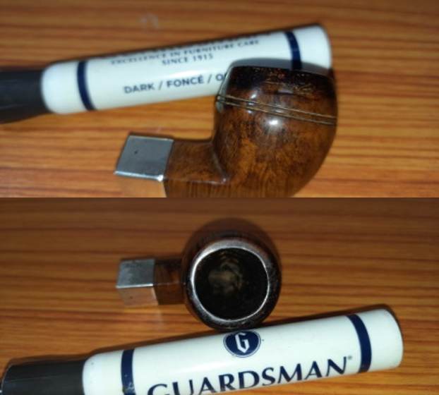 To further blend the repairs with the surrounding surface, I stained the repaired area with a dark brown stain pen and set the stummel aside overnight for the stain to set.