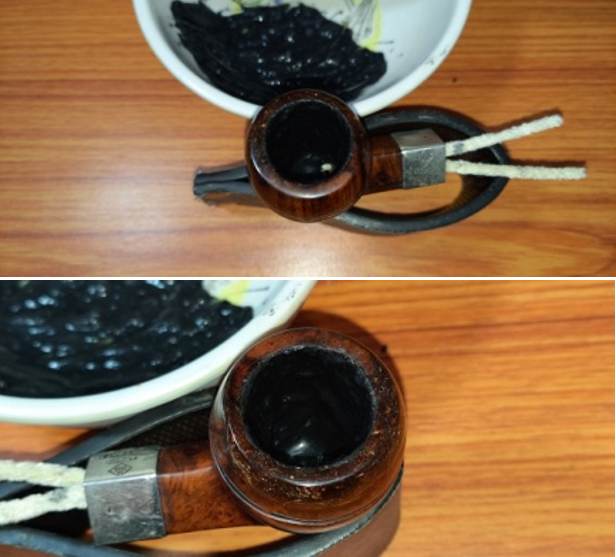 After I had protected the repaired portion of the rim and the walls of the chamber with a coat of J B Weld, it was necessary to prevent this coat from coming into contact with the burning tobacco. I addressed this by mixing activated charcoal and plain yogurt to a thicker consistency, just enough that it would spread easily and applied it evenly all along the chamber walls after inserting a folded pipe cleaner through the draught hole to keep it open. Once dry and set, this will not only protect the walls but also aid in faster build up of cake.