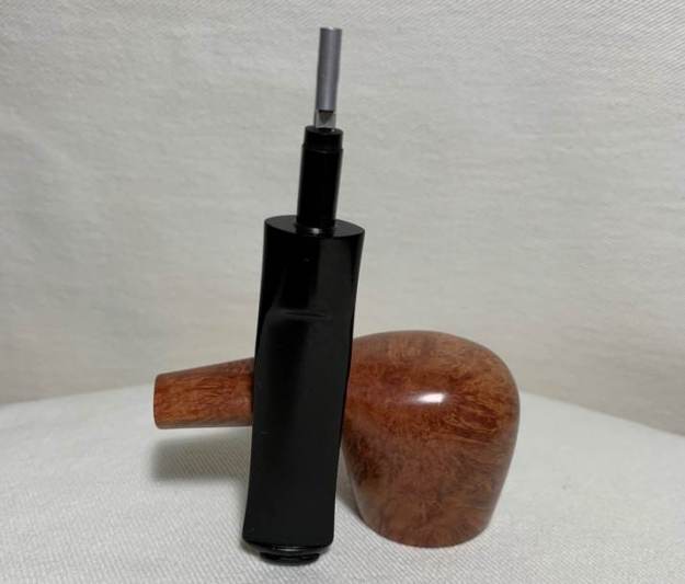 I removed the stem from the shank and took photos of the pipe and stem to give you a sense of what the pipe looks like. The stem is an older style straight one with no flare at the button end. There is also a very different style stinger pressure fit in the tenon.