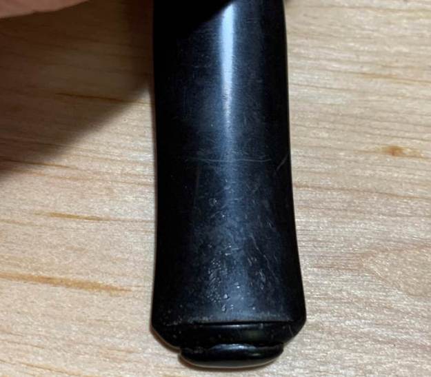 The first photo below shows the flaw in the finish. Jeff captured it and the photo shows that is a flaw/fill that came out. I filled in the chip/flaw in the underside of the shank with clear super glue and briar dust. I am happy with the way it blended in. I have drawn a red circle around it in the photo below.