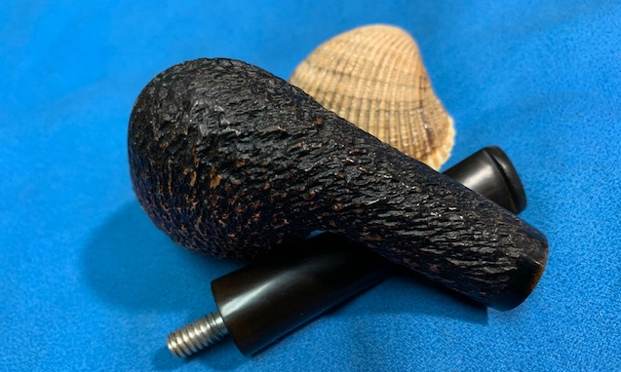 I touched up the stamping on the left side of the stem and the underside with white acrylic fingernail polish. I applied it with the dauber in the bottle and scraped off the excess with a worn 1500 grit micromesh pad. The left side of the shank had what appears to be an elephant and the underside clearly reads Kenya.