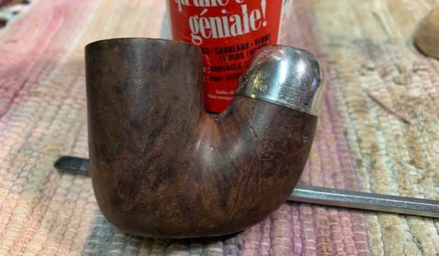 I cleaned out the internals of the bowl, shank and sump with pipe cleaners, cotton swabs and isopropyl alcohol. It was filthy and I wanted to make sure to kill whatever was lurking in the bit of tobacco in the bowl and sump. It smells and looks much better now.