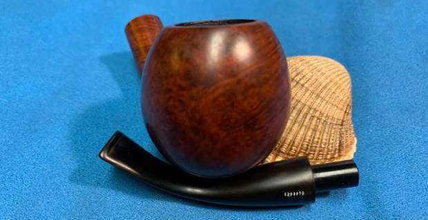 This well made mystery pipe that is lightly smoked. It is a Poker or Cherrywood Sitter with a slope on the front can be yours today. It is a well made pipe with a tall bowl and a great finish. The rim top is smooth and the inner edge is lightly beveled. The finish is a quite attractive around the bowl. The grain is straight around the sides of the bowl and shank and birdseye on the rim top and base. The left side of the shank is stamped BW or FW and no other stamping. The pipe looks great, feels great in the hand and should smoke very well. The contrast between the polished black vulcanite stem and the brown finished bowl works well together. This pipe is ready for you to load with a favourite tobacco and make it yours. The dimensions of the pipe are Length: 6 inches, Height: 1 3/4 inches, Outside diameter of the bowl: 1 1/2 inches, Chamber diameter: 7/8 of an inch. The weight of the pipe is 46 grams/1.62 ounces. This well made, moderately priced pipe might be one to add to your collection.