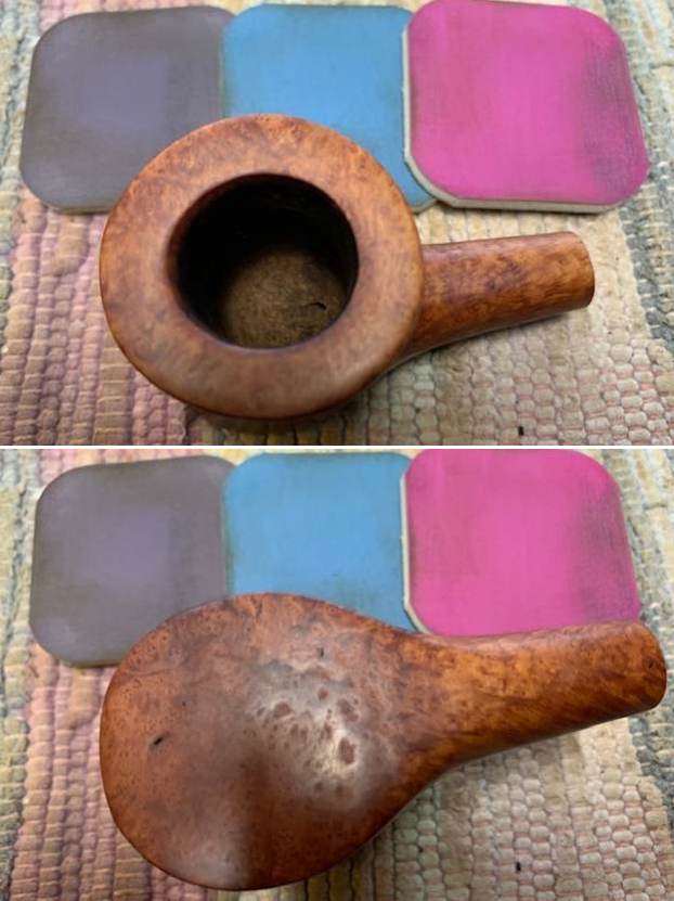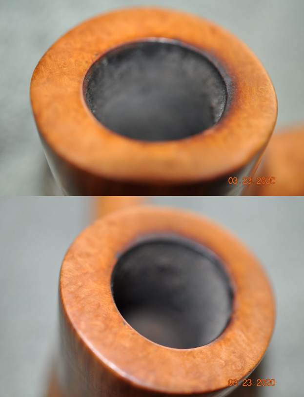 He took photos of the rim top and bowl to show the condition of the bowl and rim. The rim top looked amazingly good under the grime with some amazing birds eye. You can also see the cake in the bowl. And the lava on back edge of the rim. He took photos of the stem surface to show the oxidation and the tooth chatter and marks on both sides ahead of the button.