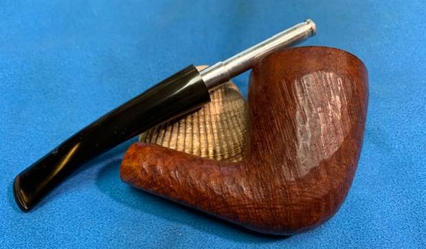 For those unfamiliar with this series, the Sportsman pipes were roughly shaped, semi-finished and sold each year at the Toronto Sportsman’s Show as rugged, rough-and-ready pipes suitable for bringing along to the cottage, hunt camp, fishing lodge or campground. The briar blocks were factory drilled, had the top half or so of the bowl machine-turned, and were fitted with a stem containing the Brigham filter system. The bottom half of the bowl and the shank were left roughly carved. Many of the Sportsman pipes were graded at a 3 Dot level, though I believe they were available in 3, 4 and 5 Dot grades.
