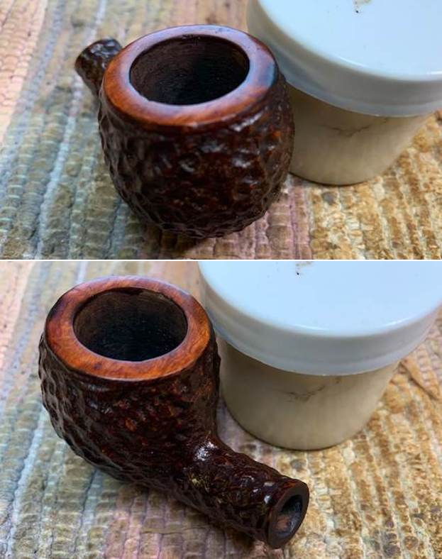 Not too long ago my wife and I had dinner with some good friends here in Vancouver – first time since COVID-19 so it was good to see them. At the beginning of the meal he handed me a box that he said was for me. In it were some pipes that he was giving to me and a bunch of cigars. The pipes included two Brigham rusticated pipes that I have included photos of below. The two pipes in the photo were clean but well smoked. The bowls had light cake and some lava and darkening on the rim top. The stems were lightly oxidized and had tooth chatter on both sides ahead of the button. I decided I would work on them next. I finished the Sportsman Dublin first and now turned my attention to the second pipe. It is a classic Brigham Shape I call an acorn. It is well carved with a rusticated finish and a smooth rim top. It is stamped on the underside and reads 189 followed by Brigham [over] Made in Canada. There was one dot on the stem side and tooth chatter and oxidation. It was going to be a beauty once cleaned up.