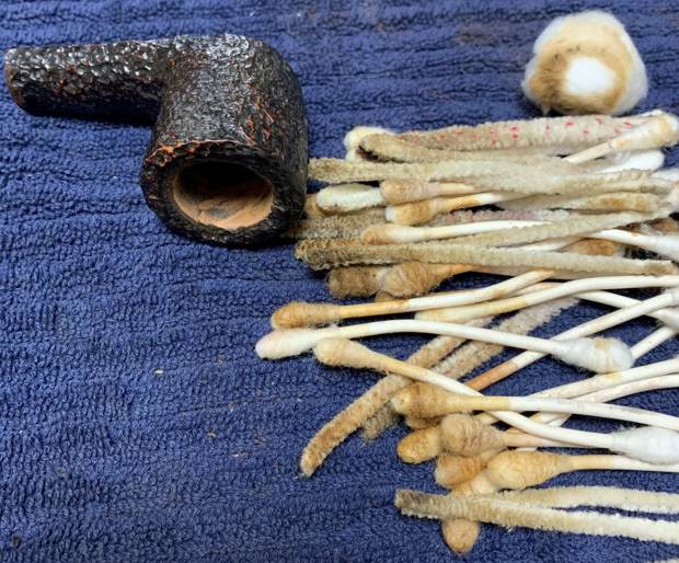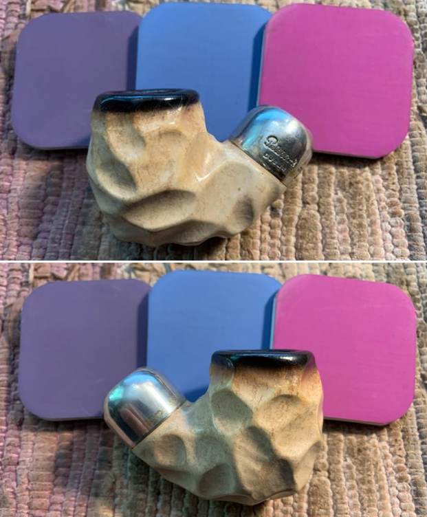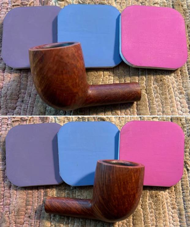 - If the stain has lightened considerably from the cleaning, buff the rim top to make sure the polishing does not bring the briar to match. If not, it can be restained to match the rest of the bowl using stain pens that are available on line.