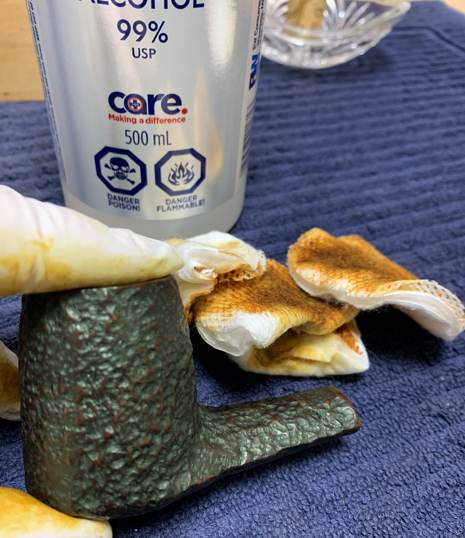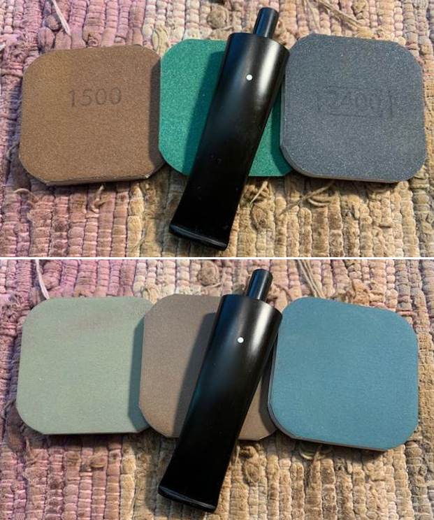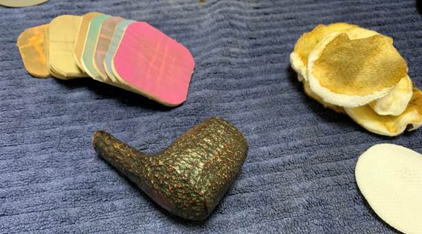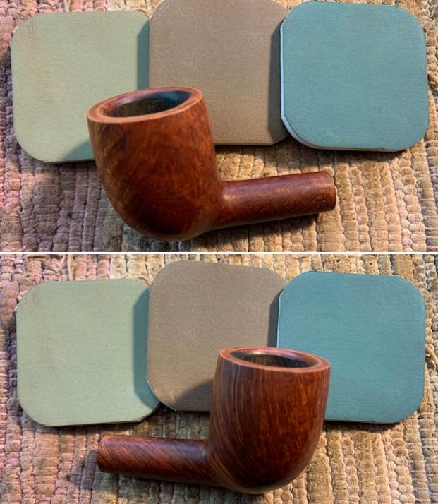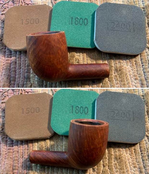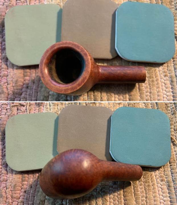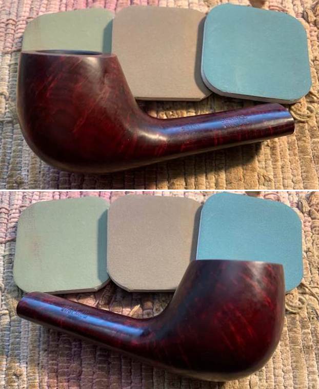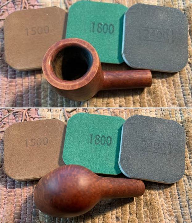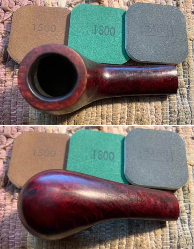 - Reclean the bowl and edge with a clean cloth. If the edge matches the rest of the bowl you are finished and can buff and wax the pipe.
