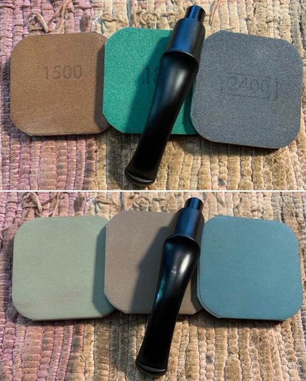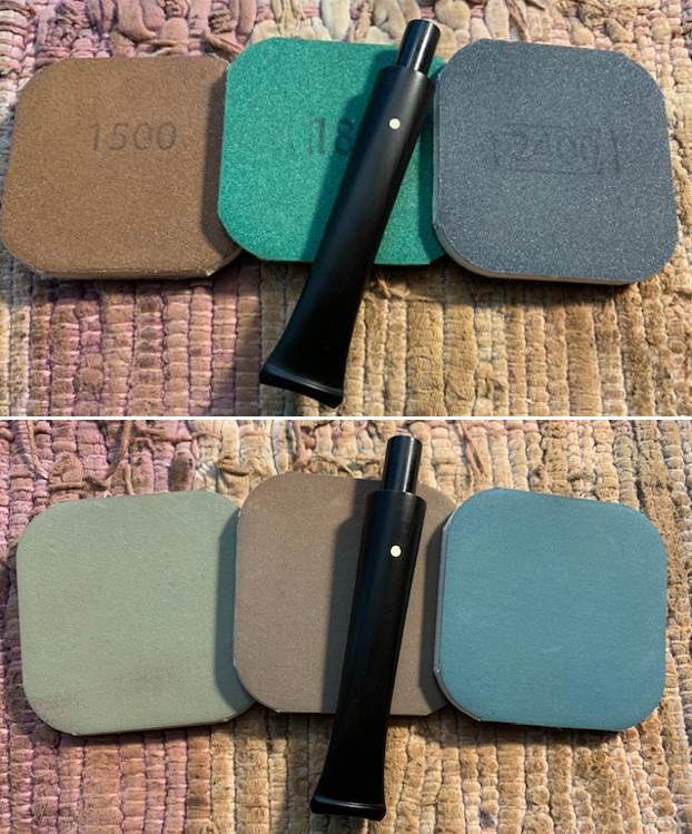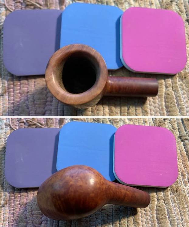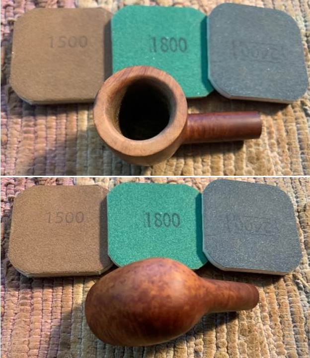- Buff the bowl and rim with a buffer and a polish like Blue Diamond and then generously wax the briar with carnauba wax and buff with a clean buffing pad.