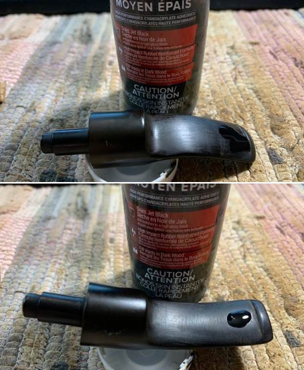 I set the bowl aside and turned to work on the stem. I “painted” the stem surface with the flame of a Bic lighter. I was able to raise most of the marks but a few remained on both sides. I filled them in with black super glue and set the stem aside to let the repairs cure. Once they had cured I used a small file to flatten them and start blending them into the surface of the stem.