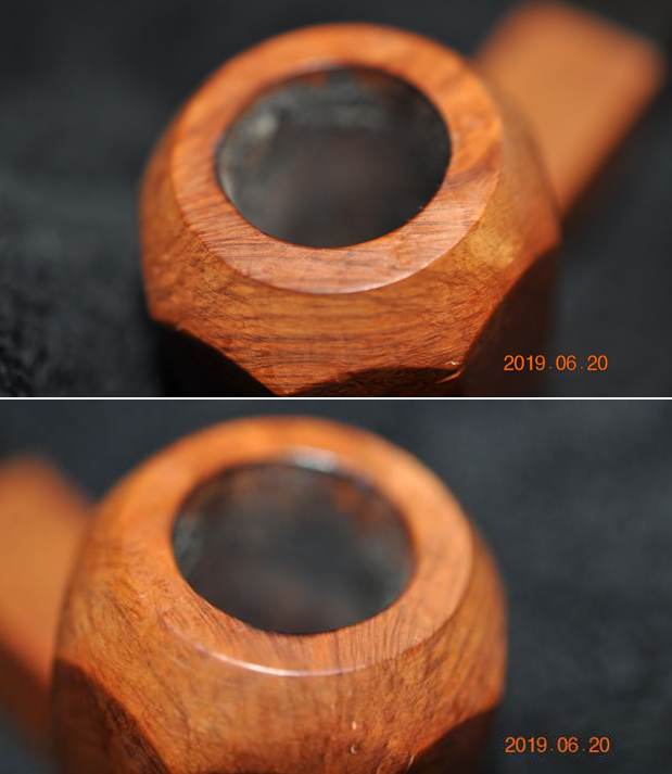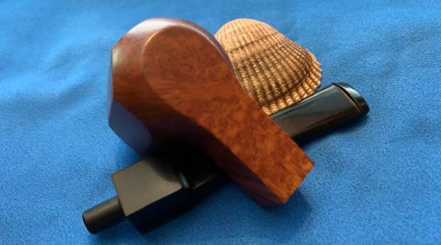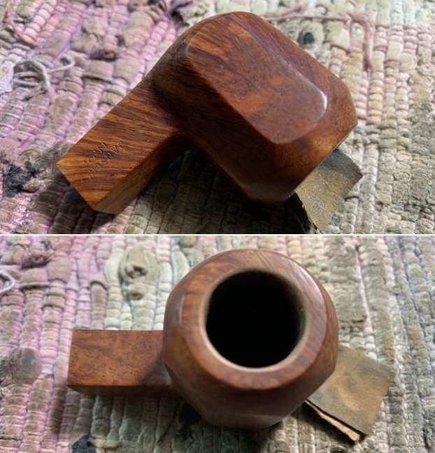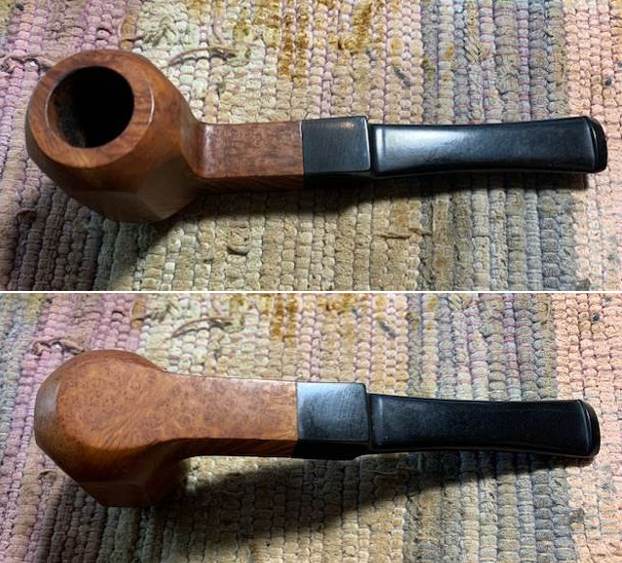 The next pipe on the work table came to us from an online auction on 03/21/2019 in Wilkes Barre, Pennsylvania, USA. The pipe is an interesting hexagon shaped panel shaped pipe that had been lightly smoked. The pipe is stamped on the left side of the shank and reads JANSEN’S [over] N.O. The finish is dirty and has some nice grain highlighted by the medium brown stain. The bowl was lightly caked around the first ½ inch down into the bowl then there was bare briar. It was quite clean and the inner edge looked had some damage on the right front. The saddle stem was a nice vulcanite and looked very good. There was light tooth chatter on both sides ahead of the button. Jeff took some photos of the pipe before he started his cleanup work.   He took photos of the rim top and bowl to give a clear picture of the thickness of the cake and cleanness of the rim top. You can see a little darkening and damage on the front right inner edge of the rim. The top and underside of the stem it is remarkably clean and undamaged. Jeff took photos of the bowl sides to give a sense of the grain on this pipe.    The stamping on the side of the shank is clear and readable as noted above. I turned to Pipephil and there was nothing listed for the Jansen’s N.O. pipes. Yesterday I spoke with Jeff and commented that I wondered if it was a Pipe Shop in New Orleans.