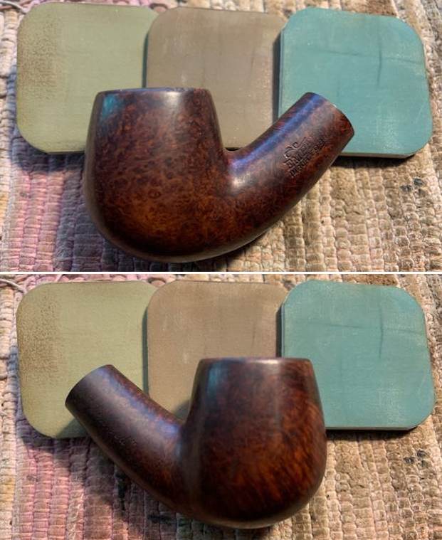 I polished the smooth portions of the briar with 1500-12000 micromesh sanding pads and wiping it down with damp cloth after each sanding pad. The inner edge of the rim, the band on the shank end and the band round the smooth base were all polished. As I worked through the cycle of pads the shine developed with each change of pad. The pipe looks very good.