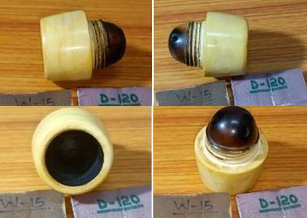The pipe consists of three parts, a Meerschaum bowl, Bakelite base and shank and the Redmanol straight stem with a round orifice. These three parts come together as an instrument of smoking by means of threads at the bowl and stem ends.The meerschaum bowl is in very good condition with just a few scratches over the sides. The chamber has a thick layer of dried and crumbling cake. The rim top is in pristine condition and does not have any overflow of carbon deposits. The thread on the cup is slightly worn only at a small section and the attaches securely with the Bakelite shank. The bottom of the meerschaum cup has three draught holes and shows a couple of dents/ dings. The draw on the pipe was not very smooth and open. Close observation of the depth of the meerschaum cup made me realize that it touched the heel of the Bakelite base and constricted the air flow. I shall deal with this issue subsequently. The Bakelite base is clean with no traces of old oils and tars in the trough that houses the meerschaum cup. The brass rim cap at the top of the Bakelite base is firmly fixed and is nicely clean and shining. The mortise shows some traces of gunk but should clean up nicely. There are a couple of minute chipped spots over the right side of the diamond shank edge (encircled in yellow). The brass band at the shank end shows some signs of brassing and should polish up to nice shine. The brass rim cap and the shank band coupled with the translucent Redmanol stem add a nice bling to the appearance of the pipes. The diamond Redmanol stem has a rounded orifice which also points to its vintage. It has a rich translucent red color and the light really plays through. I cannot wait to see the stem clean up. Minor tooth chatter is seen on the upper and lower surface. The pointed corner edge of the lip on the left is broken (encircled in green) and will either have to be reconstructed or filed away to a straight profile. The stem airway has darkened due to accumulation of saliva, oils and tars and would need to be thoroughly cleaned. The screw-in tenon is of the same Redmanol material and is covered with dried oils and tars.   The Process