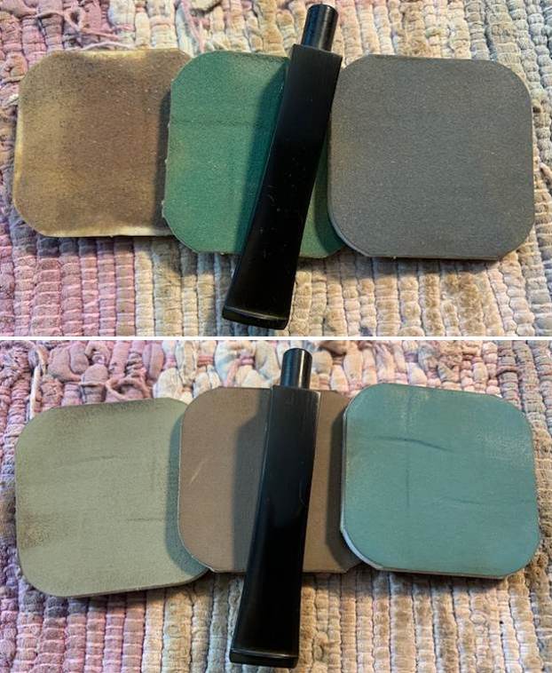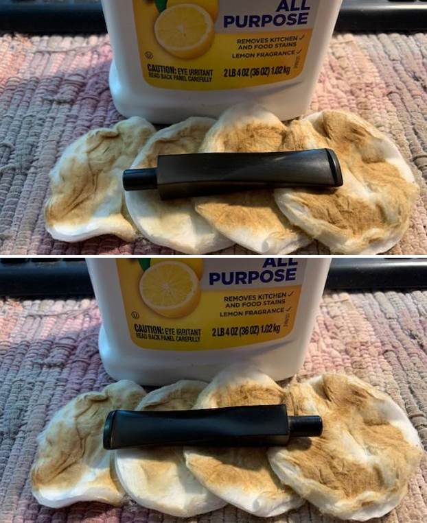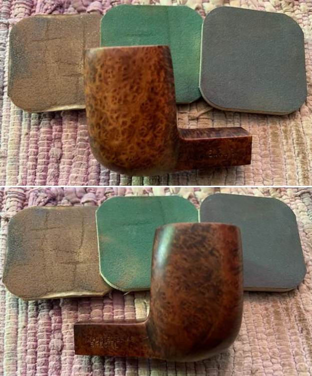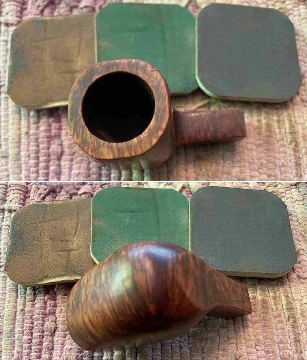I scrubbed the externals with undiluted Murphy’s Oil Soap and a tooth brush. I worked over the rim top and the rest of the bowl and rinsed it off with warm water. I dried off the briar with a cotton towel.