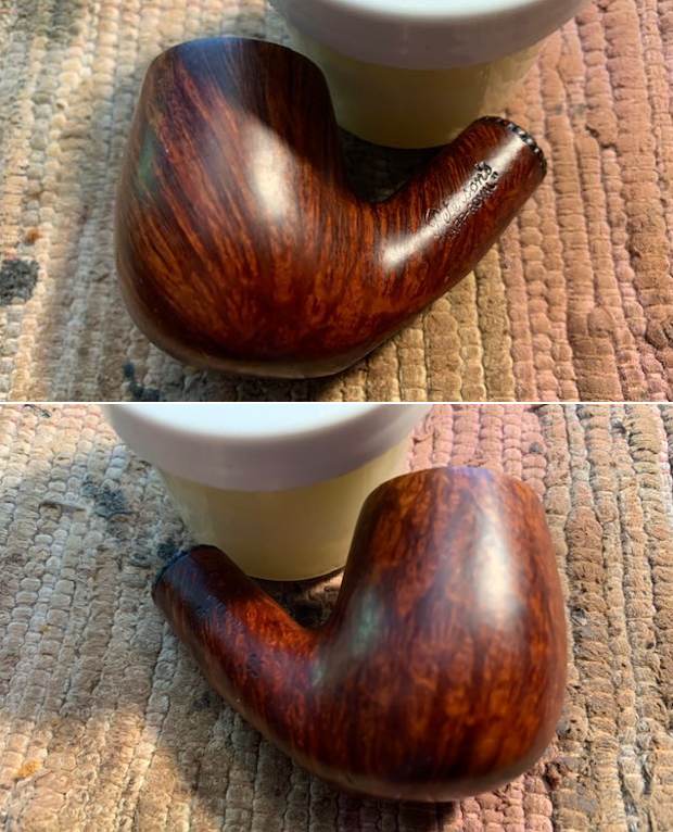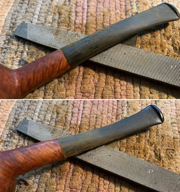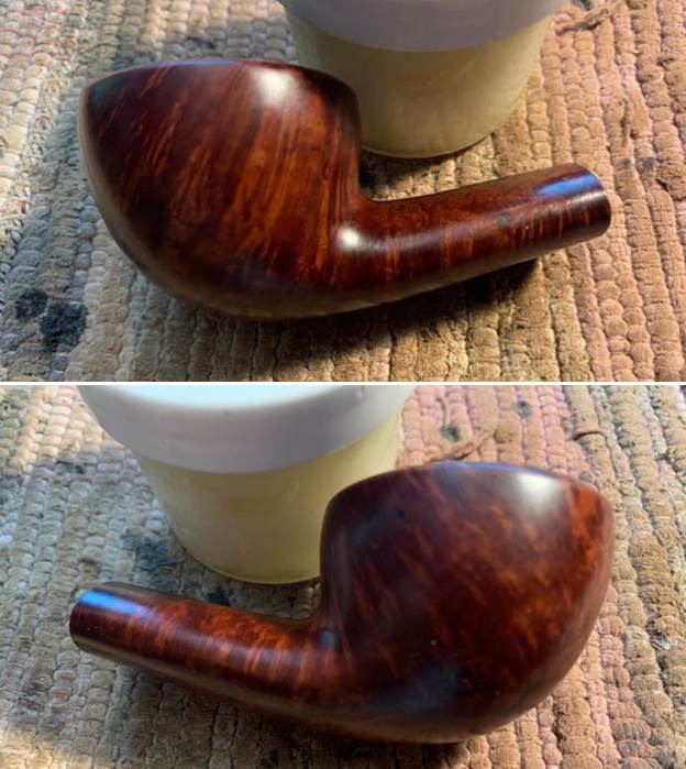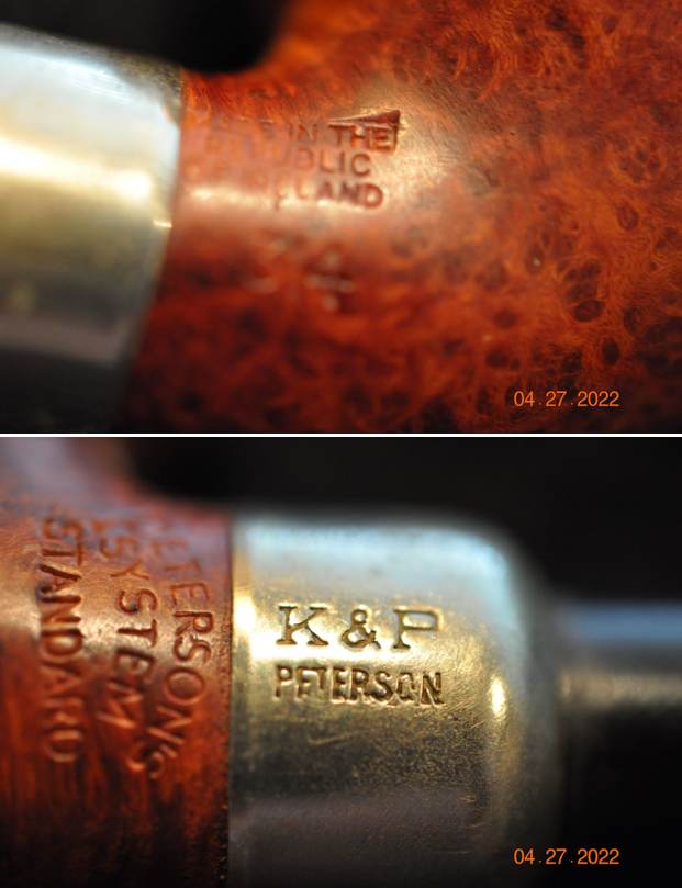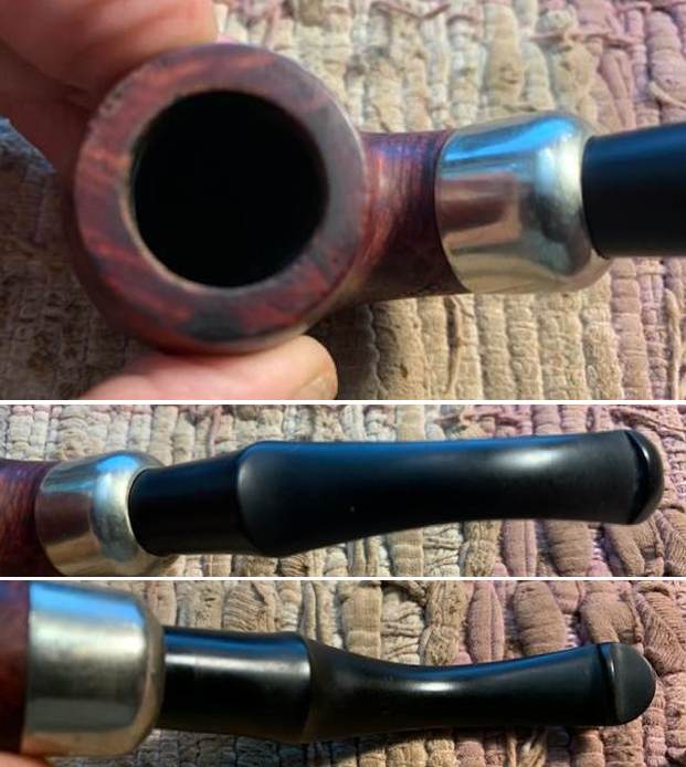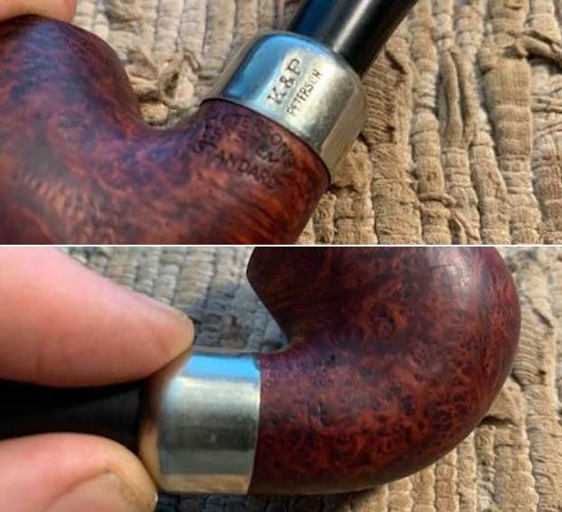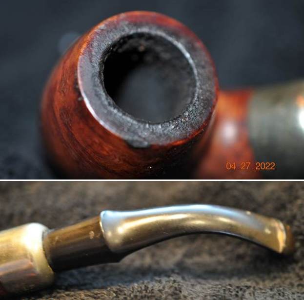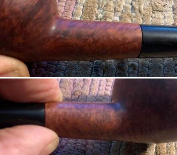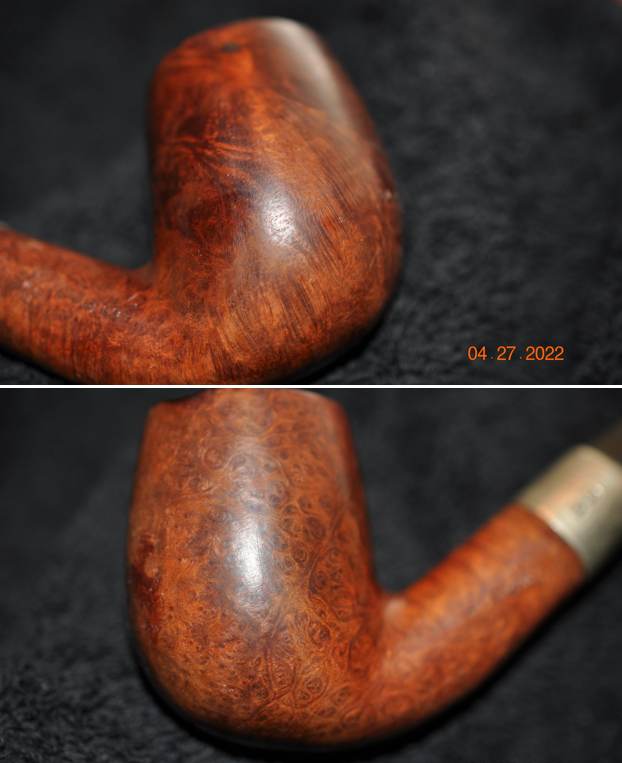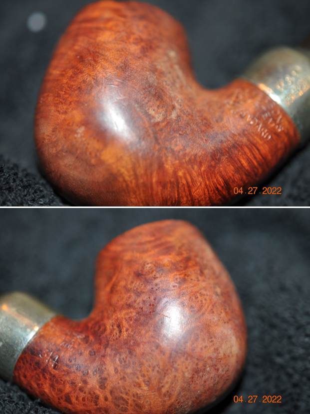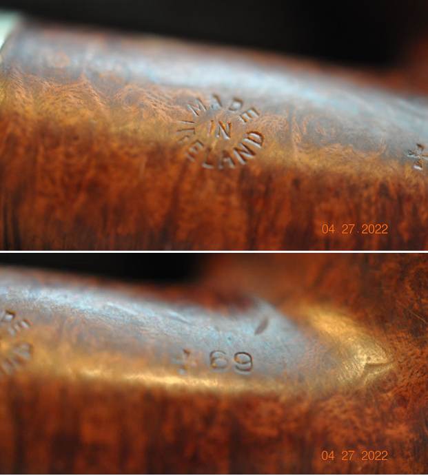 I tried to capture the stamping on the sides of the shank. It is faint in spots but is readable as noted above. You can also see the diameter variation in the stem and the shank in the photos. I am pretty certain that somewhere along the way the original stem broke and cracked the shank. The pipe was banded and a new stem put on the pipe. Whoever did the work did not adjust the fit of the stem.