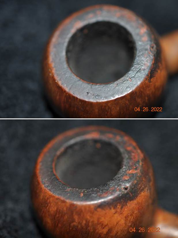 I took photos of the rim top and bowl as well as the stem surfaces to show the condition of the well smoked pipe. You can see the thick cake in the bowl and the heavy lava on the inner edge and rim. The stem was oxidized, calcified and had tooth chatter on both sides ahead of the button.