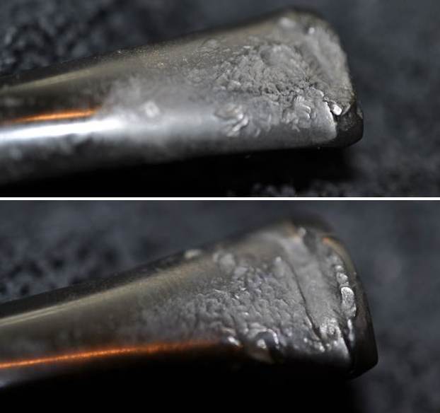 I used a folded piece of 220 grit sandpaper to smooth the rim top and remove the darkening in and damage. I went over the inner edge of the rim to smooth out any roughness. Once I was finished I liked the way it looked.