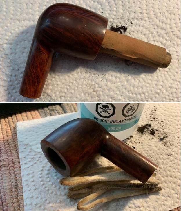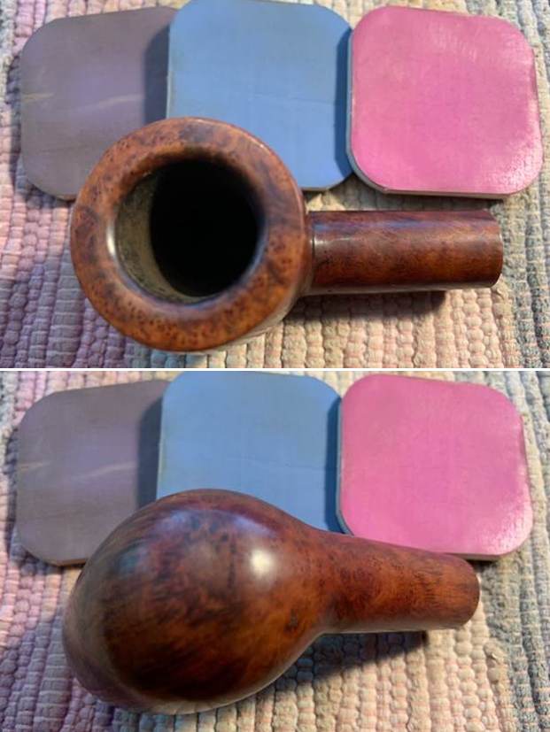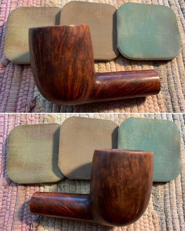 I set the bowl aside and turned my attention to the stem. I “painted” the surface of the stem with the flame of a Bic lighter and was able to lift the tooth marks and chatter. It looked much better and the marks all lifted. Polishing the stem would take care of the damage.