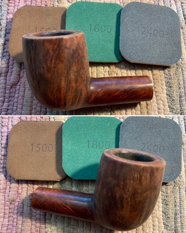 I polished the briar with micromesh sanding pads – dry sanding it with 1500-12000 grit pads. I wiped the briar down with a damp cloth to remove the sanding dust. The briar really took on a rich shine with the polishing.