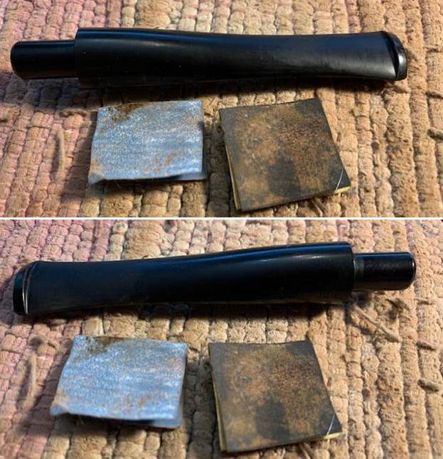 I set the bowl aside and turned my attention to the stem. I sanded the tooth marks and chatter with 220 grit sandpaper and started the polishing with 400 grit wet dry sandpaper.