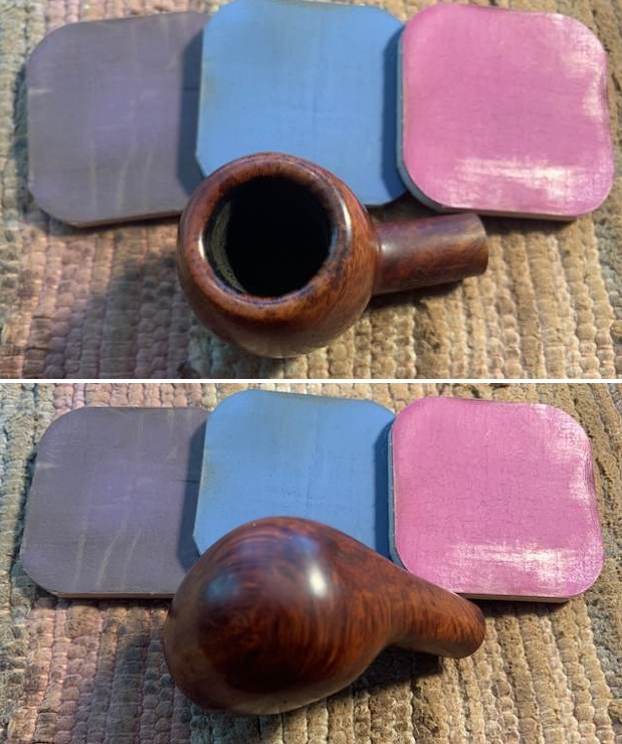 I worked some Before & After Restoration Balm into finish of the briar with my fingertips to clean, enliven and protect it. I let the balm sit for a little while and then buffed with a cotton cloth to raise the shine. The Restoration Balm really makes the grain stands out beautifully.