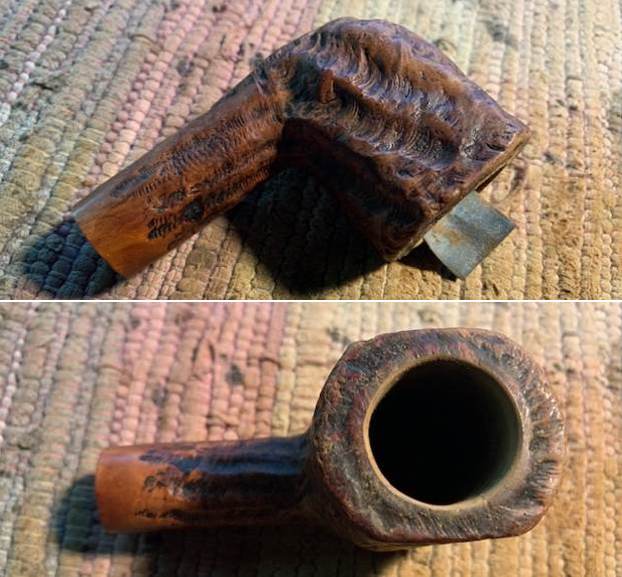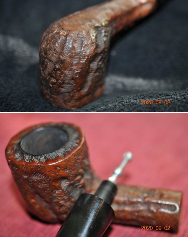 Jeff took photos of the sides and the heel of the bowl to give a picture of what the briar looked like. The rustication pattern around the bowl is instantly recognizable as done by Custom-Bilt. The last photos shows a stinger in the tenon but is has disappeared since it arrived here.